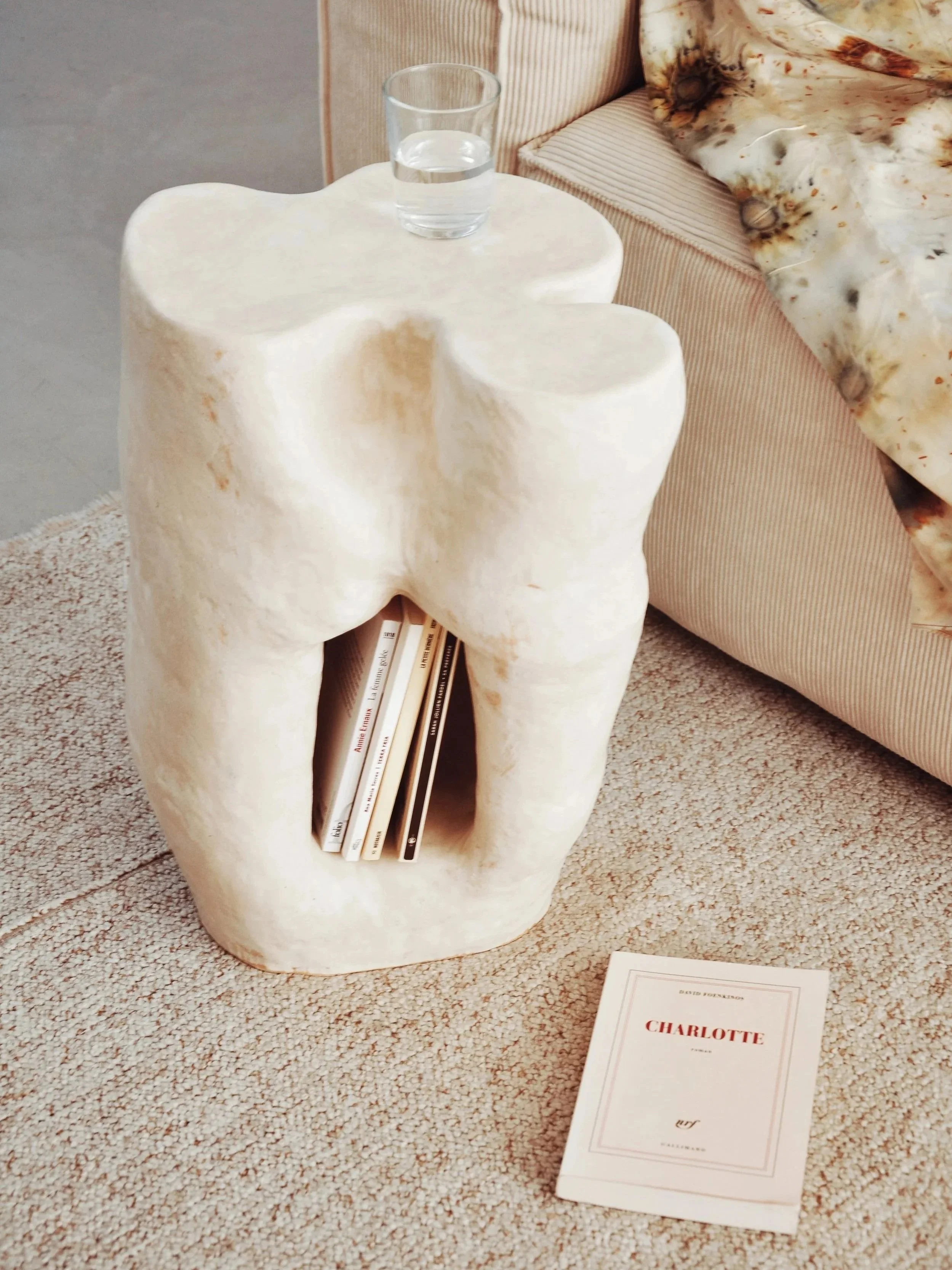 L'argile, autrefois cantonnée aux assiettes, bols, vases et autres contenants, s’émancipe et investit d’autres usages. Marguerite Porche utilise ce matériau millénaire pour créer des luminaires, tables d’appoint, tables basses et petites assises.